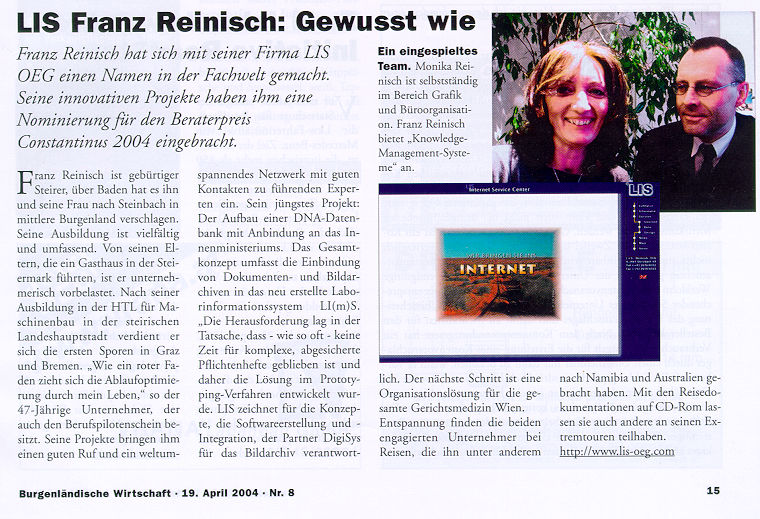 was zu berichten gibt, z.B. zum bevorstehenden 10jährigen Firmenbestand der LIS Reinisch OEG.